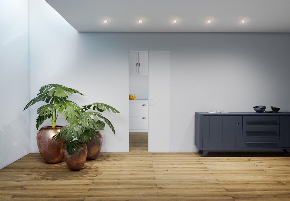 Invisidoor S je minimalistický posuvný dveřní systém, který se při otevření zcela ztrácí ve zdi a v uzavřeném stavu je dveřní křídlo dokonale zarovnané s okolní stěnou. Tato nádherná varianta je kombinována s precizním posuvným kováním. Design tohoto dveřního systému nijak neovlivňuje jeho funkčnost, invisidoor S je standardně vybaven systémem softclose pro tiché a plynulé zavírání dveří. Tento produkt byl navržen tak, aby zůstalo snadné nastavení dveřního křídla i poté co je vše hotovo. Kování, softclose i auto-eject mohou být demontovány bez poškození stěny